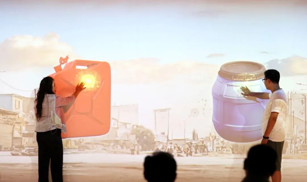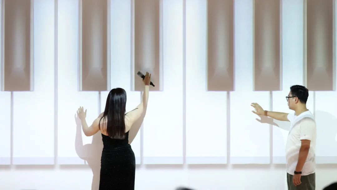 近日,这场别开生面的教学展演,彻底让观众们体验了一把“玩音乐”的乐趣。一走进这个智慧空间,仿佛进入了另一个次元。在介绍音乐节奏的环节,老师和学生们不是坐着听讲,而是站起来,通过敲击墙上投射出的虚拟汽油桶和水桶等物件,来一场别开生面的节奏游戏。每一下敲击,虚拟的乐器都会给予实时的声光反馈,让抽象的节奏变得直观又好玩。