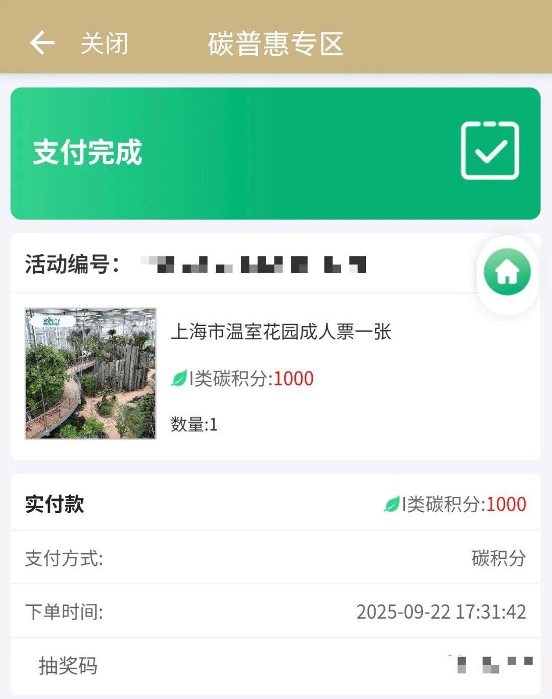 “看到有这么一个抽奖活动,抽奖成功了就兑换温室花园的门票,我就顺手抽了一下,然后很荣幸,刚好抽到了。”