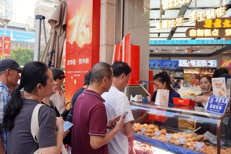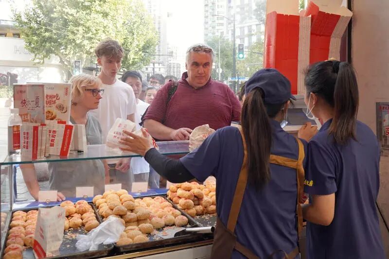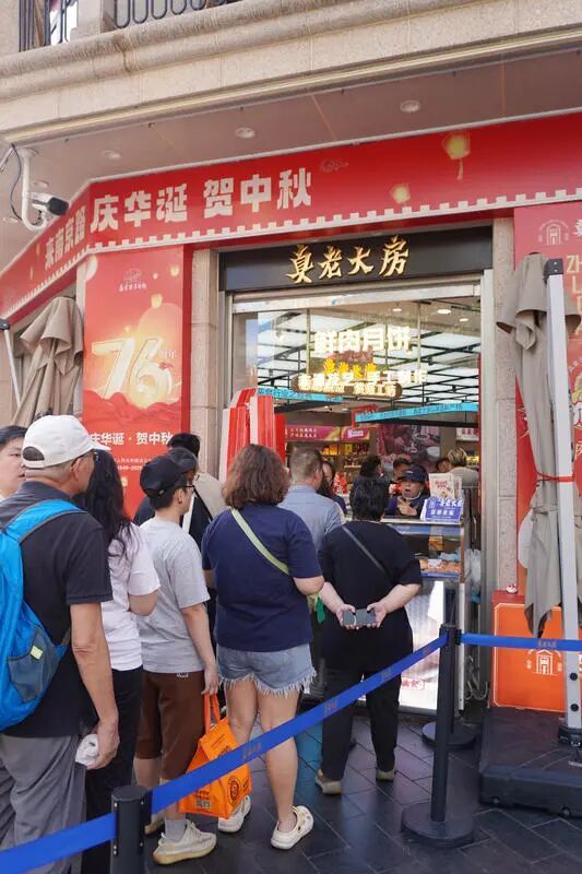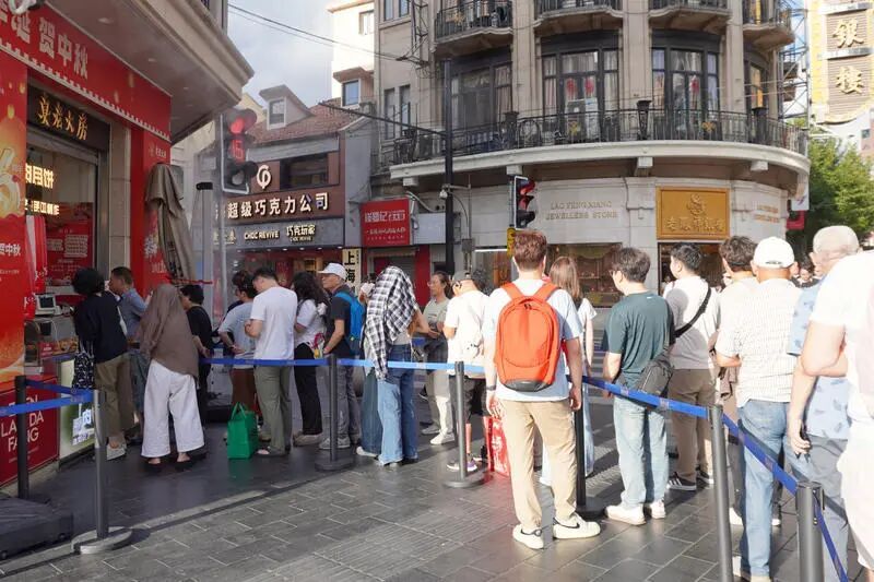 记者在南京东路上的真老大房门口看到,队伍中既有银发老克勒,也有专程来打卡的年轻人,蜿蜒的长龙成为一道独特的风景线。