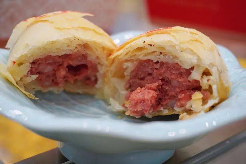 而最令人拍案叫绝的,是那画龙点睛的南乳配方。上海人熟悉的玫瑰腐乳被巧妙转化为肉馅的“秘密武器”,深红酱汁与鲜肉碰撞出甜中带咸、咸中带鲜的复合滋味。咬开酥松外皮的瞬间,南乳的醇厚与肉汁的丰盈在舌尖共舞,仿佛在味蕾上演了一场海派风情交响乐。