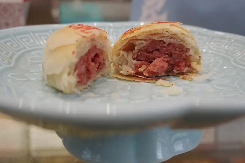 非遗技艺不是博物馆里的标本,而是活在厨房里的烟火气!作为黄浦区非物质文化遗产,鲜肉月饼坚持前店后厂、现烤现卖,老师傅们用布满岁月痕迹的双手,将酥皮叠出玲珑肌理,每道褶皱都藏着三代上海人的集体记忆。