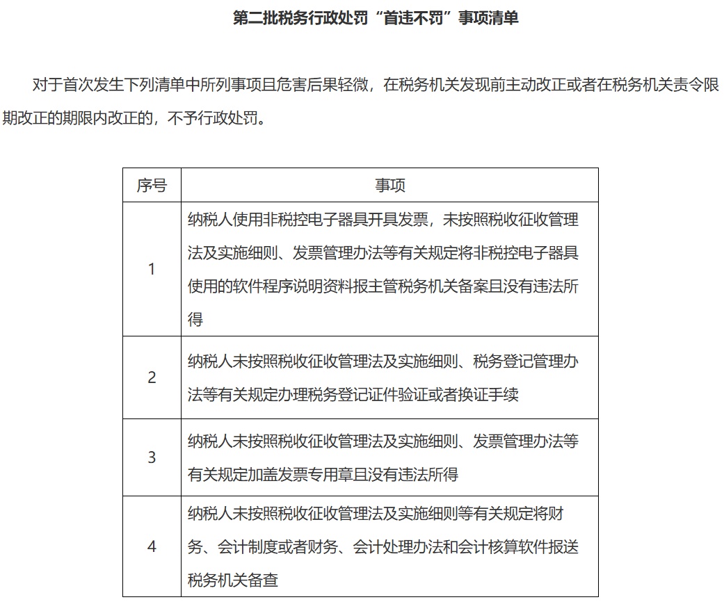 国家税务总局关于发布《第二批税务行政处罚“首违不罚”事项清单》的公告