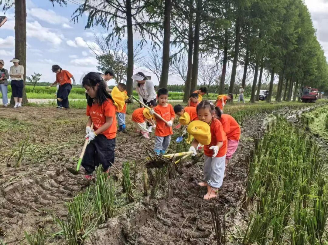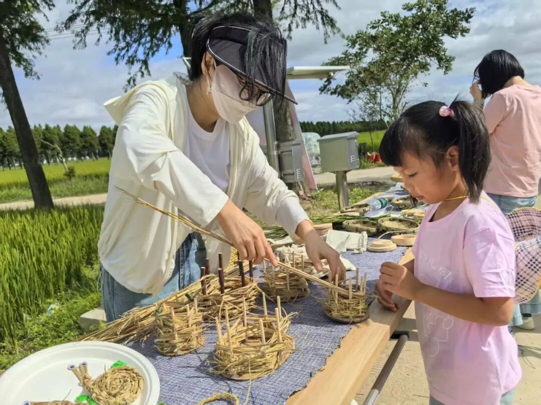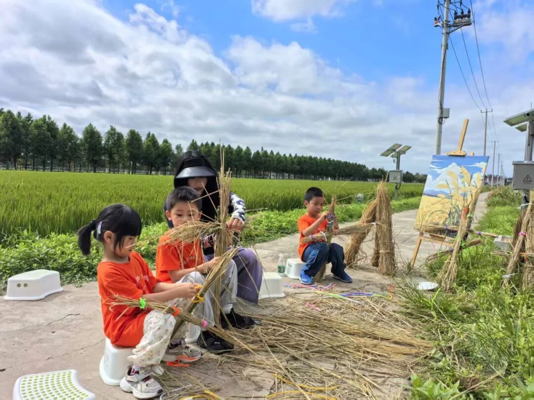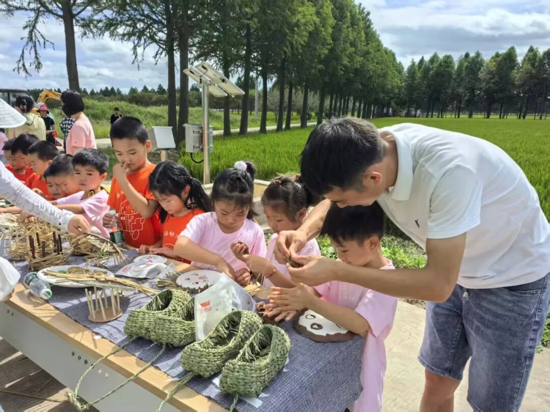活动最后,孩子们将制作的稻草人插在稻田边,五颜六色的“守护者”与金黄稻浪相映成趣,成为田野里一道独特的风景线。