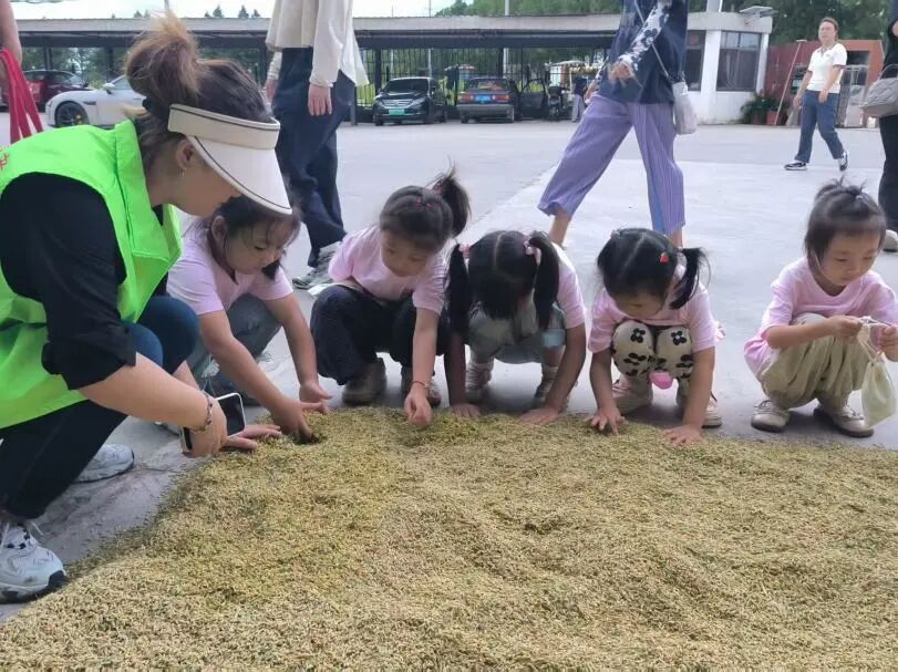 “大家看,这是稻穗,外面包裹着硬硬的稻壳,里面就是我们吃的大米啦!”在收割体验区,志愿者老师手持稻穗现场拆解,向孩子们展示稻谷的“三层外衣”——稻壳、米糠和米粒。孩子们小心翼翼地接过稻穗,有的凑到鼻尖轻嗅,“有青草的香味!”有的剥开稻壳,露出雪白的米粒,惊喜地喊道:“原来大米是这样藏在里面的!”