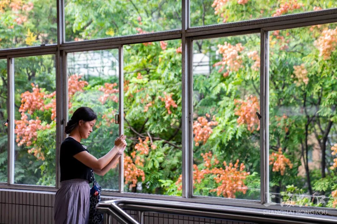 秋意渐浓 轨道交通3号线大柏树站 悄然换上了“秋日限定皮肤” 成为当之无愧的 “上海最美地铁站” 乘坐地铁缓缓驶入大柏树站 大片栾树果实便闯入视野 令人瞬间眼前一亮 此时的栾树正值最佳观赏期 翠绿的叶、金黄色的花 与火红的蒴果交织在同一枝头 阳光透过云隙洒下 光斑在叶片间跳跃 为这幅天然画卷 增添了灵动气息 不少市民游客举着手机相机 在站台窗前寻找最佳角度 记录这份独特浪漫 大柏树站的“站内秋景” 被网友亲切地称为 “打工人专属福利” 无需刻意安排时间 不用购买门票 甚至在日常通勤的路上 你就能停下脚步 感受初秋的馈赠 秋日不待人 美景正当时 当你经过大柏树站时 不妨稍作停留 感受那份不经意间 融入日常的诗意 记者:陈怡 图片:杨伯荣 编辑:陈怡