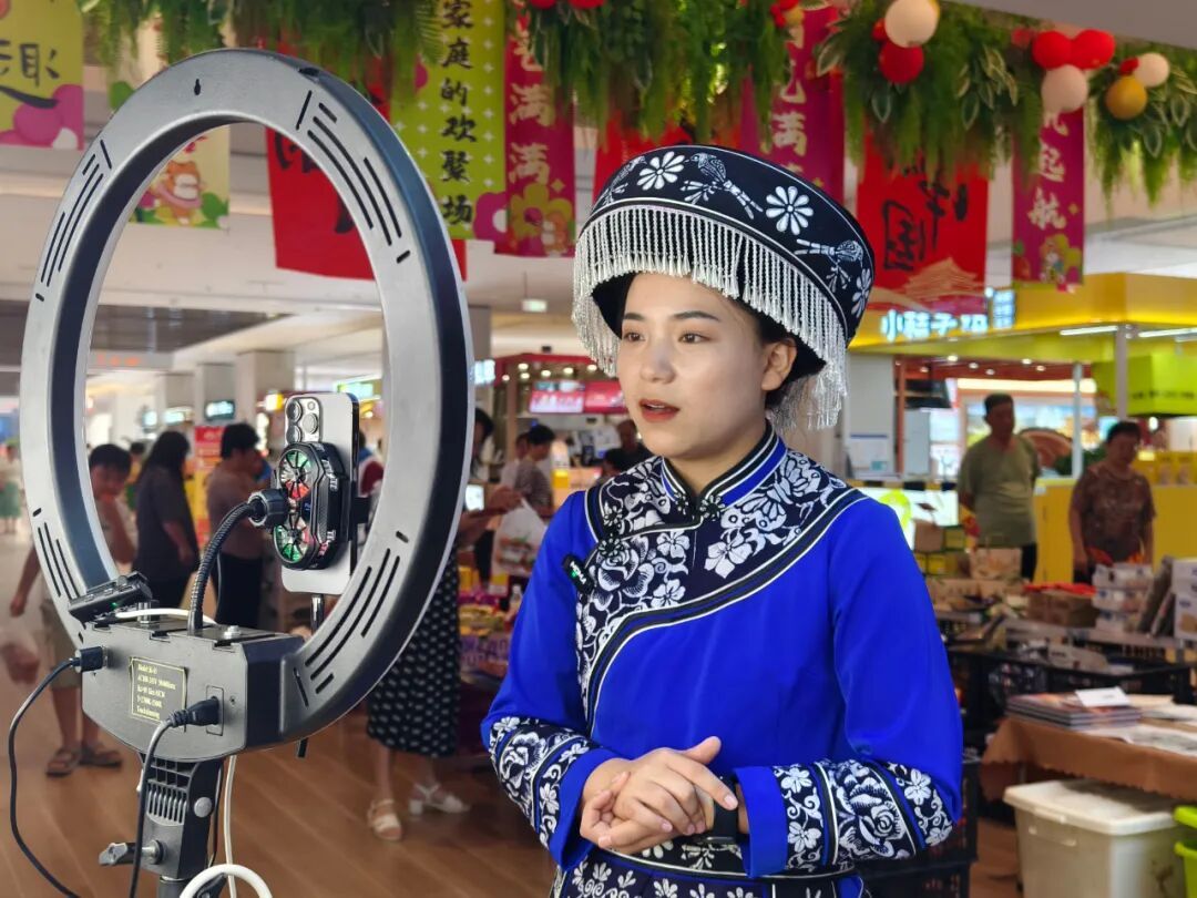 近日,一场“沪滇协作·山海有信”云南省威信县农文旅进松江推介展销市集在上海松江区大橘邻里火热开市。面对怀着满满好奇心上前围观咨询的市民们,身着苗族蜡染服饰的威信姑娘陈梦和向燕落落大方地给大家介绍起腊肉、蜂蜜、菌菇酱等威信特色农产品。而在一旁,一身苗族盛装的苏培芳熟练地打开了直播,一边聊天,一边给线上的市民介绍家乡威信,将农产品背后的新鲜故事娓娓道来,如数家珍。这场线上线下联动、为松江市民推介威信好物的市集活动,是三人半个多月来的工作日常,也是对沪滇协作消费帮扶模式的创新探索。在松江区人民政府合作交流办公室支持下,经上海援滇干部与松江百姓义工以及威信县农业农村、人社、文旅等部门的协调筹划,8月28日,土生土长的威信姑娘苏培芳和两名小伙伴乘高铁跨越山海来到上海松江,目标是走遍松江区百余个社区,凭借“家乡好物推荐官”的角色,以现场推介、直播等形式为家乡农文旅助力代言。而这一为期三个月的松江之行也将成为她们投身威信乡村振兴事业梦想的起点。“刚开始要来的时候心里挺忐忑的,担心我这个大山里出来的丫头会不会跟不上大上海的节奏。”苏培芳坦言。然而走过数十个松江社区的她早已打消了疑虑。“来到小区里,和本地的叔叔阿姨们介绍我们老家的农产品,大家都特别热情、幽默,喜欢吃也乐意买!”苏培芳乐呵呵地告诉记者,如今,在社区助农社群里,自己已经和不少本地阿姨、爷叔打成一片,大家都亲切地喊她小芳,每每开播都热情前来捧场。“这些农产品都是我们从小吃到大的,味道特别好,希望它们能跨越山海,走进更多上海市民的生活。”怀着这份朴素的初心,三人踏上了近2000公里的路途。而真正走进社区销售家乡农产品后,她们在与松江市民面对面的交流、沟通中渐渐叩开了威信面向松江的一扇窗,让更多人了解到这座藏在乌蒙山深处、赤水河上游的山乡明珠。“一开始提到威信,大家的第一反应都是‘微信’?现在说起威信,大家都知道了我们的食用菌、菜籽油,知道了扎西会议,还知道了庄子上、大屏上和赤水崖……”见证了与松江市民沟通过程中的点滴变化,她们开展助农直播的热情愈发高涨,也愈发体会到身上这副担子的重量。而她们三人从青涩到熟稔的表现,也让负责该项目的百姓义工公益发展中心负责人吴晖看到了沪滇协作、联动助农的崭新希望与无限可能。“三个月后,我们就会回到威信。到时候,我还要亲自到我们的苹果基地、猕猴桃基地、食用菌基地,到山上去连线给大家做直播,现摘现卖,给松江的叔叔阿姨们亲眼看看我们威信的地道好物!”谈及自己助农创业的下一步计划,每天都忙碌在社区销售和线上直播等繁忙日常里的苏培芳心里早有打算。而在她们回乡后,新一批的三名威信姑娘也将启程,在她们实践过的这条道路上努力耕耘,用个体的创业梦想为沪滇协作与乡村振兴助力添彩。
