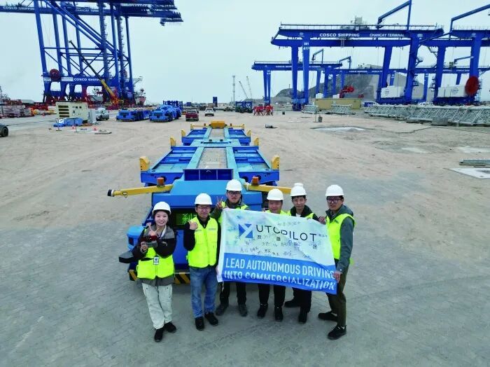 在秘鲁钱凯港,友道智途智能驾驶新能源集卡运营团队合影