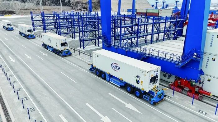 同样的智能驾驶新能源集卡也在秘鲁钱凯港投入运营。