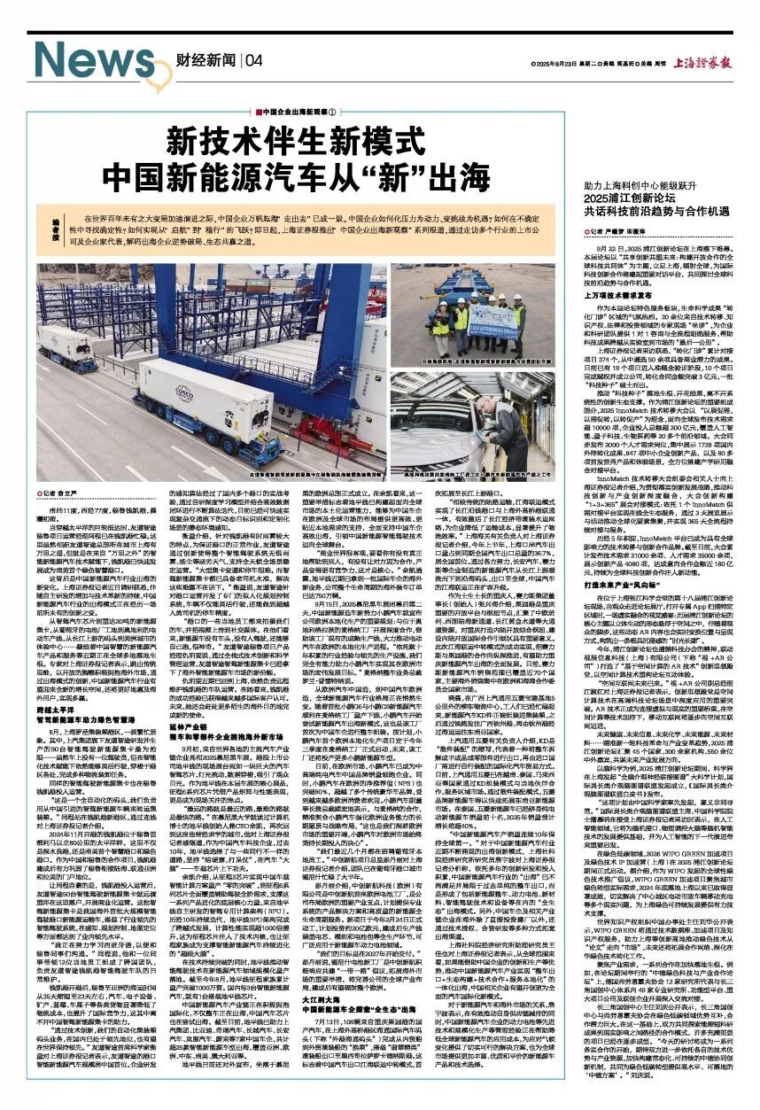 从智驾汽车芯片到重达20吨的新能源集卡,从葡萄牙的电池厂工地到奥地利的电动车产线,从长江上游的码头到美洲城市的体验中心……凝结着中国智慧的新能源汽车产品和服务等近期正在全球多地落地生根。专家对上海证券报记者表示,跳出传统思维,以开放的胸襟积极拥抱海外市场,通过出海模式的创新,中国新能源汽车行业有望迎来全新的增长空间,还将更好地惠及海外用户,实现多赢。