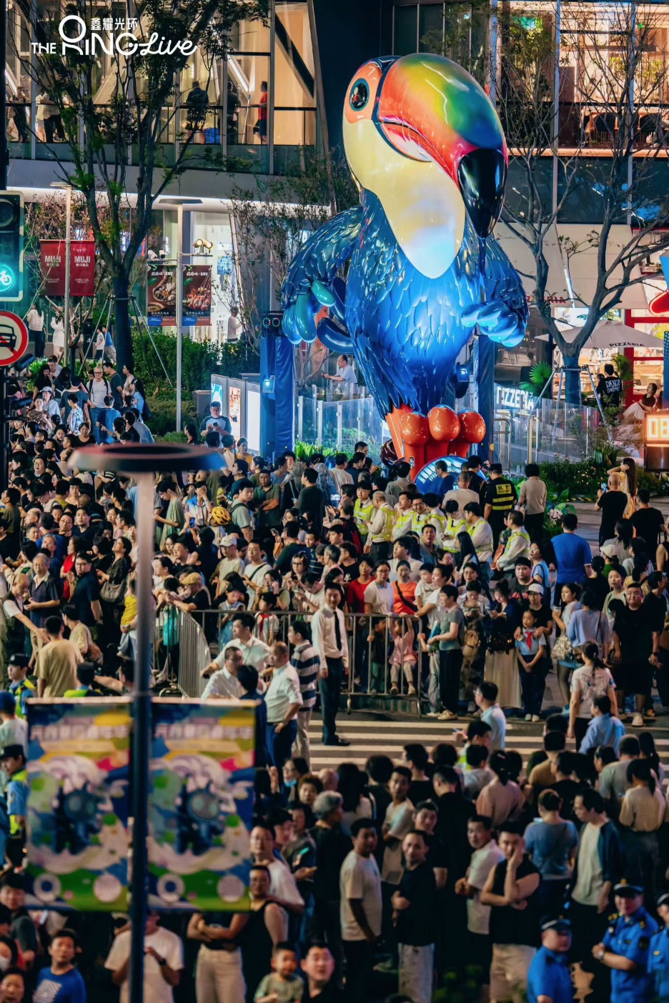 9月24日晚,徐汇区鑫耀光环·Live广场被流光溢彩的氛围包裹,2025上海旅游节花车巡游如约而至。25辆主题花车缓缓驶过街区,车身上的图案在灯光映照下灵动鲜活,与元界游戏装置、漫天飞舞的泡泡交织成霓虹海洋。巨嘴鸟拓拓雕塑旁的泡泡装置持续运转,晶莹泡泡折射出斑斓光彩,不少市民扶老携幼驻足观赏,天桥上、商场三楼户外平台挤满了抢占有利位置的观众,空气中满是欢声笑语,拉开了元界秋日奇遇季与国庆活动联动的序幕。