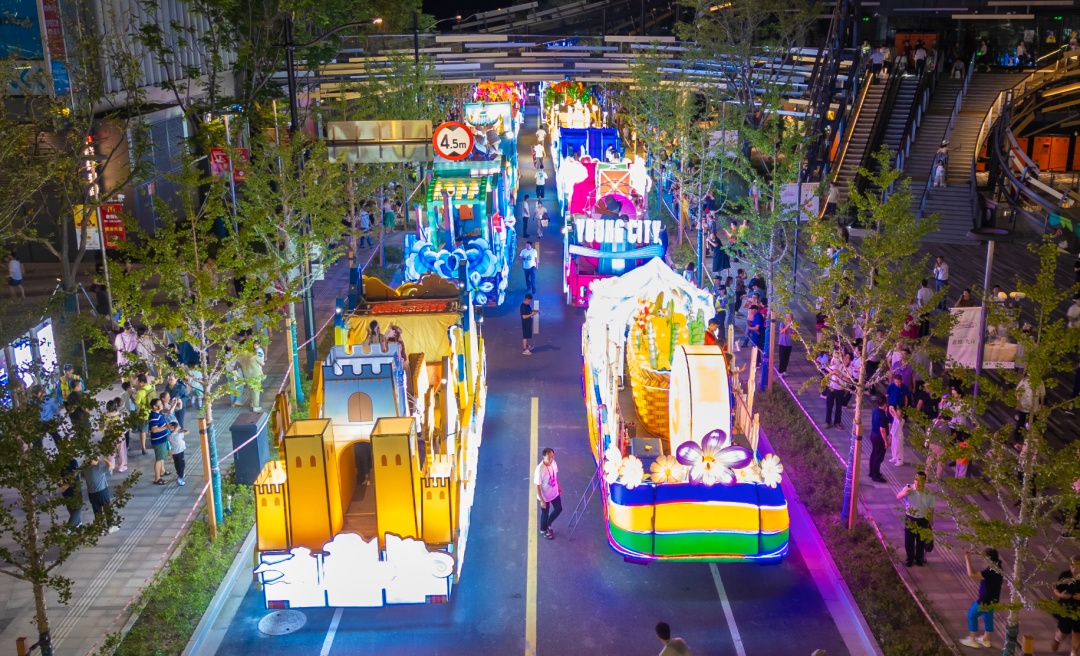 “从田林路走到这里,晚饭都没吃,就为了看这场花车巡游。”市民程阿姨的话道出了不少人的期待。当晚,花车不仅是视觉焦点,更与元界特色场景深度融合——《崩坏:星穹铁道》“长夜月”主题的梦幻水母痛街亮起,与花车灯光交相辉映;萌物咻咻的“次元光镜”魔法镜面装置实时捕捉花车影像,让市民在现实与虚拟的互动中感受独特魅力。