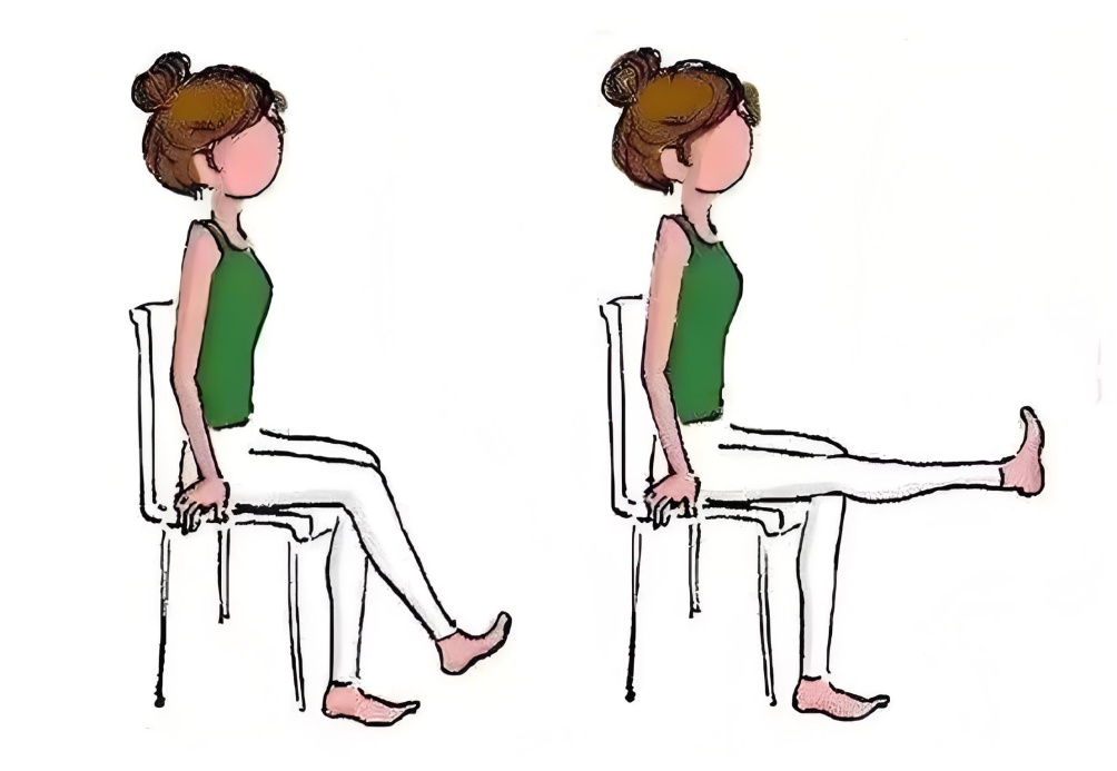 缓慢伸直膝盖到水平线,保持2–3秒,再放下