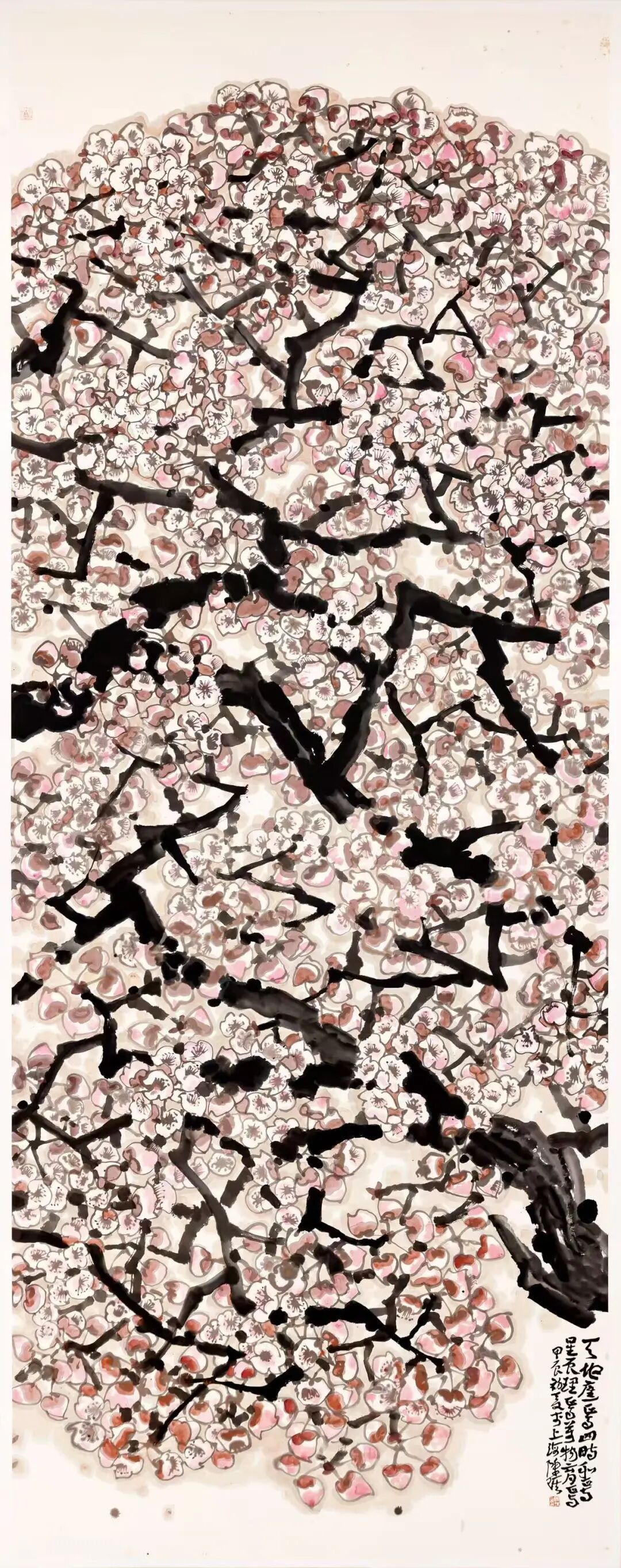陈琪《繁花齐春 樱花》336cmx145cm 纸本设色 2024年
