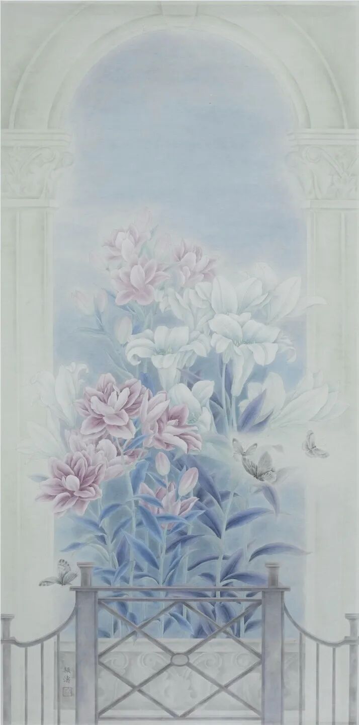 翁颖涛《月光百合》118cmX65cm 纸本设色 2022年