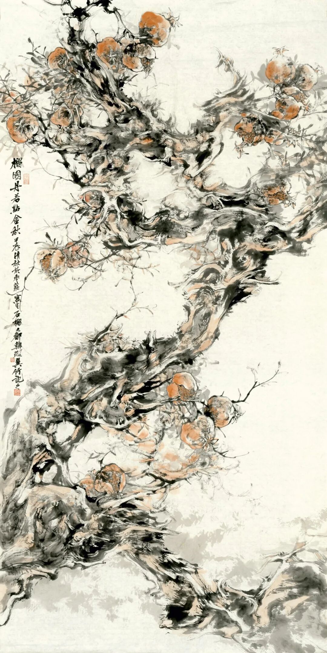 韩璐《硕果累累图》240cmX120cm 纸本水墨设色 2024年