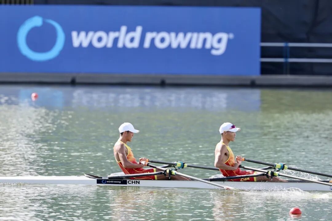 中国组合邹佳琪/富灵斩获女子轻量级双人双桨冠军,这也是本届赛艇世锦赛的首金