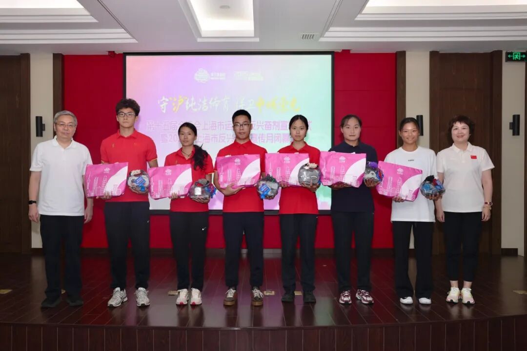 市体育局党组副书记、副局长陆檩等为反兴奋剂宣传主题口号征集活动获奖作品颁奖