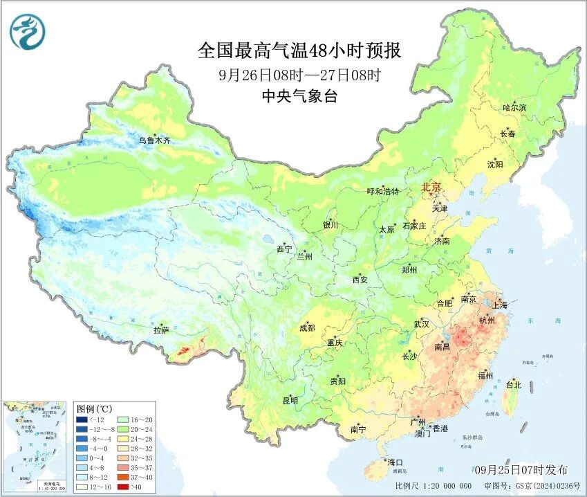 今天开始,江南、华南多地气温将再度回升,福建、浙江等地还将有小范围高温出现,虽已进入秋分,但暑热仍未彻底退场。今日多云,午后局部地区阴有短时阵雨或雷雨,东南风3~4级,相对湿度90%~50%,最低气温27℃,最高气温34~35℃。