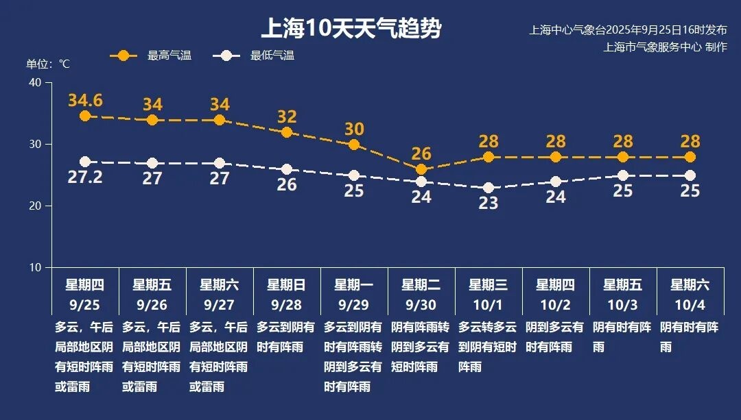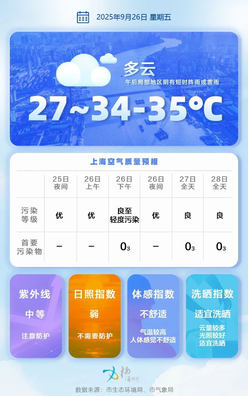 今天多云,午后局部地区阴有短时阵雨或雷雨,东南风3~4级,相对湿度90%~50%,最低气温27℃,最高气温34~35℃。虽已进入秋分,但暑热仍未彻底退场,防暑降温工作不可松懈。
