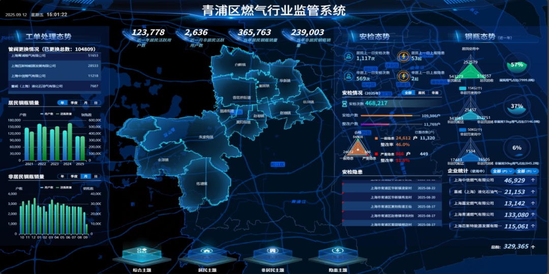 科技赋能让青浦燃气监管迈入信息化时代。青浦区燃气安全监管平台于今年5月正式投入使用,构建起瓶装液化气“销售—配送—使用”全生命周期的实时监控网络。工作人员通过平台可动态追踪气瓶的流向,一旦出现超量存放、违规运输等异常情况,系统自动触发预警,及时联动属地执法人员快速处置,改变了以往人工巡逻“覆盖有限、易有疏漏”的短板。未来,平台还将进一步对接青浦区城市运行“一网统管”系统,实现数据共享、跨部门协同处置,让燃气监管的“智慧大脑”更灵敏、响应更迅速,为青浦燃气安全加上“双重保险”。