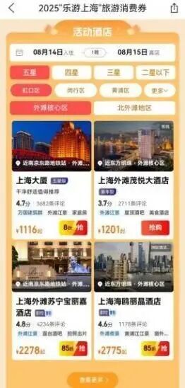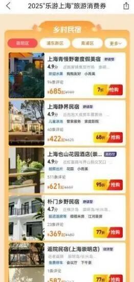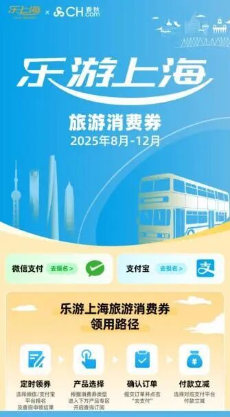 限时福利惊喜来袭,国庆中秋,等你来上海玩! 市文化旅游局介绍,9月26日至28日上午10:00,2025下半年“乐游上海”旅游消费券将开启领券使用!消费券使用有效期从领到券日起,共有7天。请抓紧领取您的优惠权益,畅享便捷实惠的上海旅游体验吧!如何查询可用券商户&核销用券?详见↓ 下半年市文旅局对活动规则进行了优化升级,请大家在参与之前留意一下最新规则: 新增券种:下半年活动市文旅局在住宿券品类里加入了满500减150的乡村民宿券,可用于指定的“乡村民宿”商户,仅限线上预定时使用,以此来丰富大家的选择。但该民宿券不可用于其他住宿商户,其他四档住宿券也不可用于“乡村民宿”商户。 使用期限:每张消费券的有效期为7天,从领到券日起计算,最晚可在下个星期同一日的前一晚24:00前核销使用(即本周五领取的消费券,可在下周四晚24:00前使用),逾期未使用自动作废。 产品预订:8月份和9月份领到的消费券,无论是住宿券或游览券,预订离店/出游期限最迟为2025年10月8日24:00(优惠权益覆盖国庆、中秋假期)。请消费者关注相关平台提示,早安排早预订早享优惠。 特别告知:国庆、中秋长假期间没有旅游消费券发券安排,下次发放于10月10日启动。 如何查询可用券商户&核销用券? 这篇攻略请收好! 一、门店柜台支付类 银联平台的消费券分为在线预订支付类(线上核销)和门店柜台支付类(线下核销),两类券适用场景不同,互不通用。其中,门店柜台支付类消费券为银联云闪付APP专属消费券。平台特别推出商户查询地图模式,消费者可以便捷掌握所在地附近的可用券商户信息。 云闪付APP 查询商户:拥有门店柜台支付类消费券的消费者,可以打开云闪付APP首页搜索“乐游上海”,或点击首页「本地精彩」-「乐游上海」专区,进入活动页面,下滑页面找到商户查询专区,点击“立即查看活动商户名单”或“地图模式查看线下活动门店”,浏览或搜索可用券商户。 核销用券:拥有门店柜台支付类消费券的消费者,在相关商户的门店柜台结账时,现场出示云闪付APP付款码支付,即可享受消费券满减抵扣优惠。 二、酒店集团APP/小程序支付类 下半年参与的商户基本延续上半年,消费者可登录酒店集团APP或小程序,预订上海地区酒店。若订单满足消费券使用门槛,将在支付环节自动扣减。 三、在线预订平台APP/小程序支付类 消费者还可以在携程、飞猪、美团、去哪儿、同程、抖音、东方购物、看东方、中旅旅行、春秋旅游、途牛等在线预订平台,查询商户并核销用券。 查询商户:登录各预订平台APP,搜索“乐游上海”,进入活动页,点击“查看更多”,浏览可用券商户;或微信搜索“乐游上海”,进入“乐游上海旅游消费券”微信小程序,点击底部“住宿&游览券可用商户名录”,跳转至预订平台的微信小程序,即可在活动页浏览可用券商户。此外,请消费者特别留意一下新增的乡村民宿频道。 核销用券:进入活动页,选择可用券商品,填写订单信息后,选择消费券对应平台进行支付。若订单满足消费券使用门槛,将在支付环节自动扣减。 携程旅行APP 飞猪旅行APP 美团APP 去哪儿旅行APP 同程旅行APP 抖音APP 东方购物APP 看东方APP 中旅旅行APP 春秋旅游APP 途牛APP