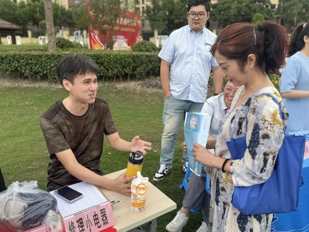 晚会开始前一小时,便民服务摊位便已热闹开张。党建联建单位、商铺联盟单位、辖区物业公司和社区达人齐上阵,提供普法宣传、金融宣传、电信业务咨询、义诊、免费理发、衣物修补、小电器修理、磨剪刀、修理自行车、洗地垫等贴心服务。这一场便民“及时雨”,让大家在家门口就能享受到实实在在的便利,也彰显了多元主体协同参与社区治理的强大合力。