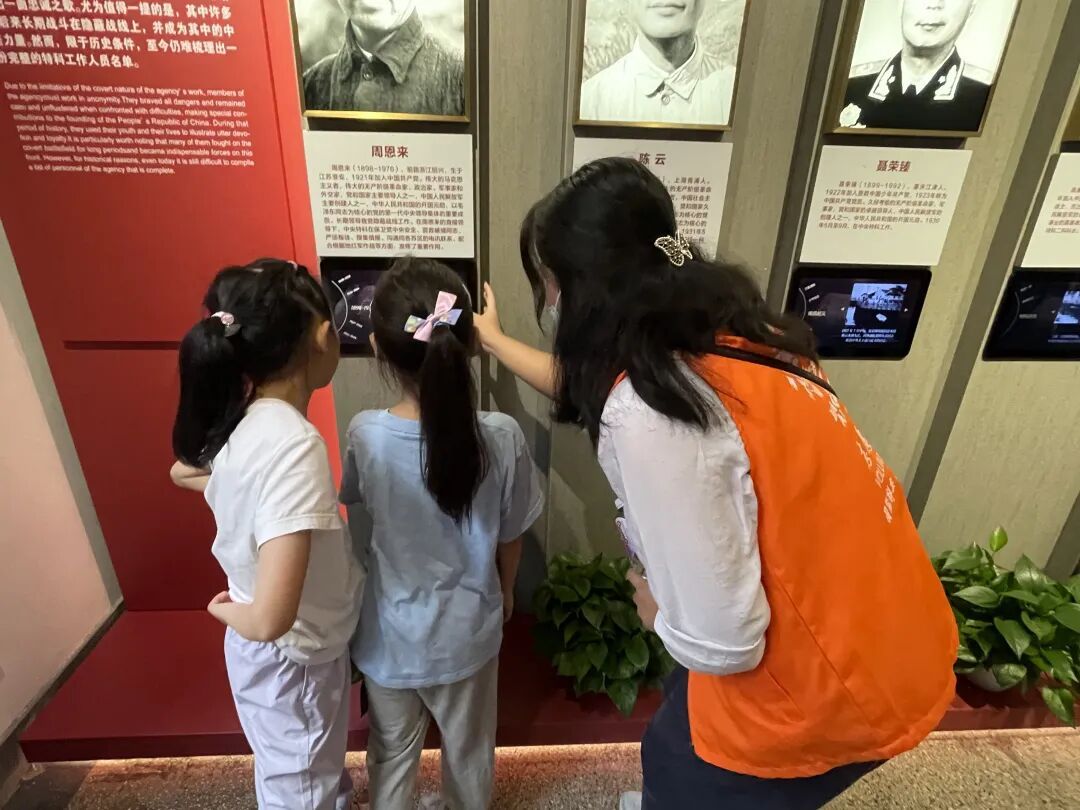 孩子们还集体参观了中央特科机关旧址纪念馆。“这是中国共产党于1927年至1935年间在上海设立的情报保卫机构,是保卫和服务党中央的‘红色堡垒’。”志愿者一边讲述,一边将大家带到展柜面前,让孩子了解展柜内一件件文物传递出的“中国必胜”信念和不惧困难的大无畏精神。