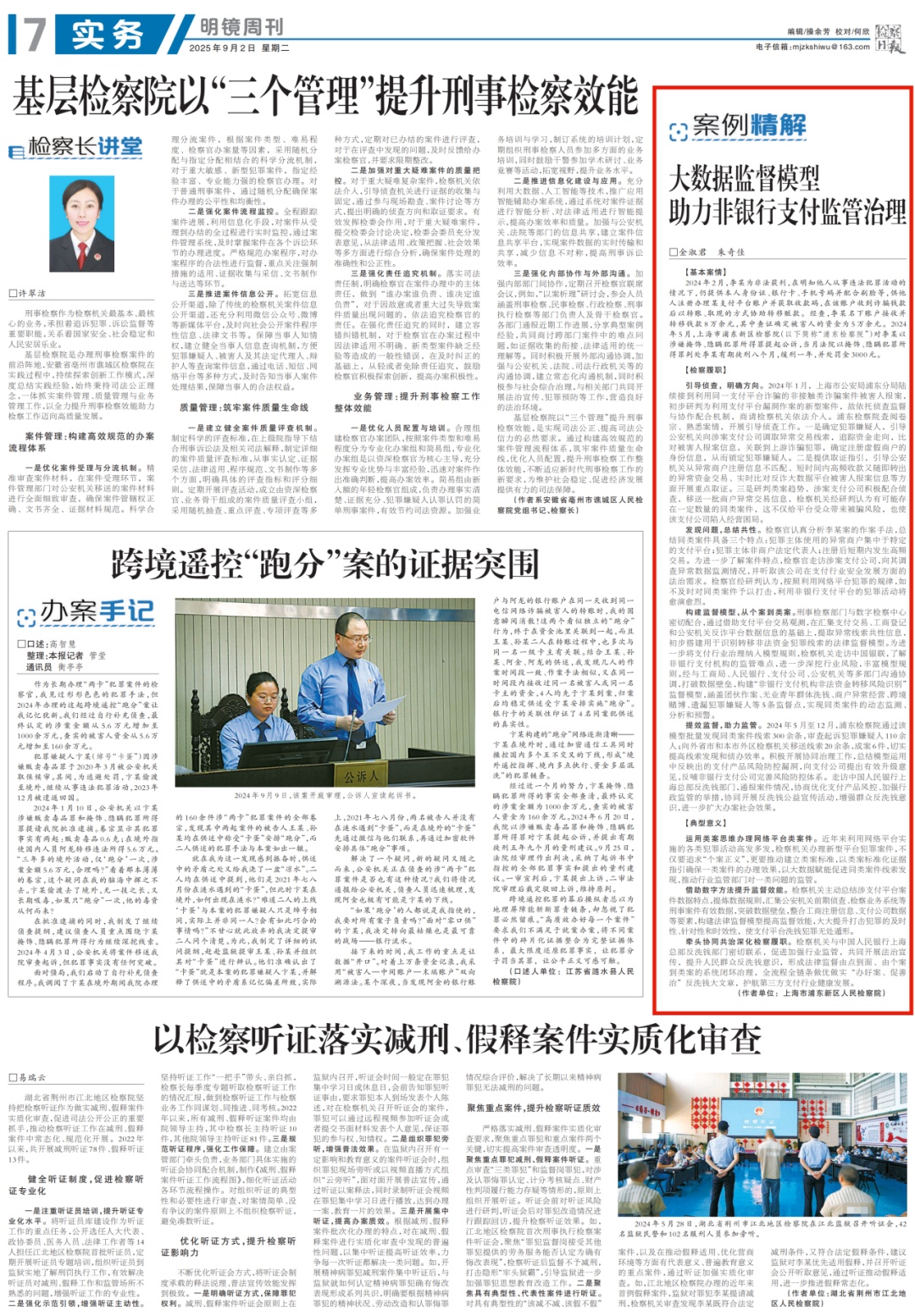 检察机关与中国人民银行上海总部反洗钱部门密切联系,促进加强行业监管,共同开展法治宣传,提升人民群众反洗钱意识,形成法律监督由点到面、由个案到类案的系统闭环治理,全流程全链条做优做实“办好案、促善治”反洗钱大文章,护航第三方支付行业健康发展。