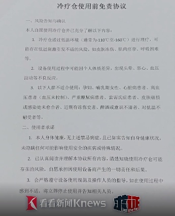 签下免责协议后体验“低温冷疗舱”