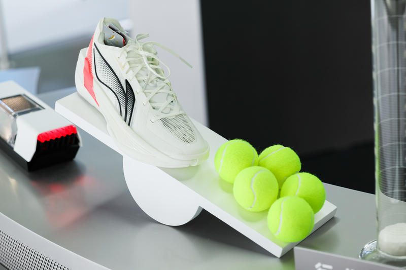 为让观众深度感受和体验产品,展区设置了两大互动体验区。通过鞋款拆解件展示与拼装体验、“天平称重装置”、超䨻中底材料轻弹测试等亲身体验,让观众清晰感知科技带来的魅力。