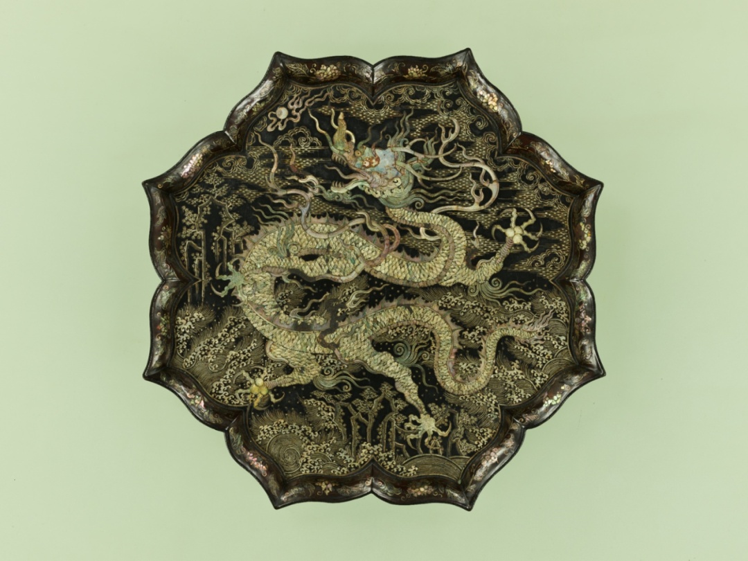 元 黑漆螺钿海水龙纹菱花形盘 东京国立博物馆藏