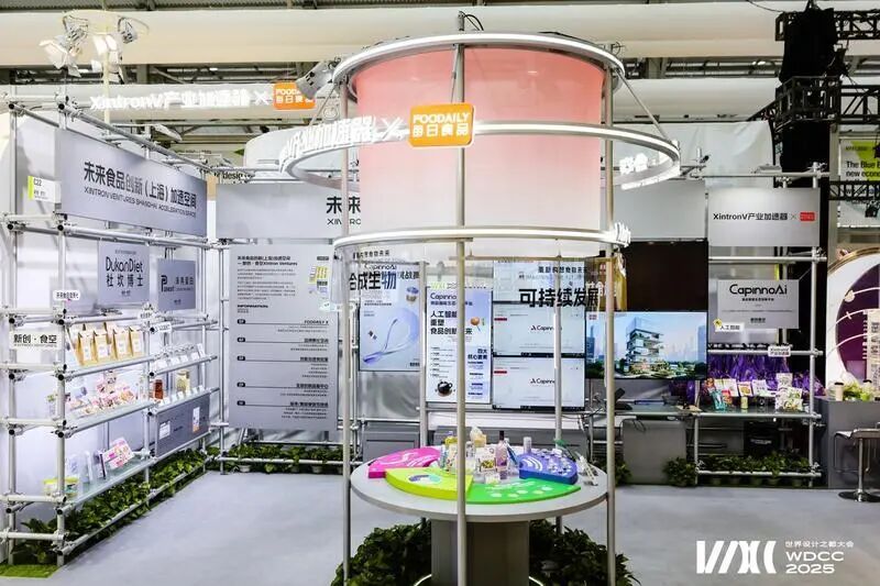 据介绍,设计者将健康生活方式融入城市花园风格的未来食品创新生态社区,展出的产品有7日纤体鲜食套装、生物科技企业研制的未冉蛋白,还有实验室餐厅的各种原材料,为观众呈现“未来食品健康化——设计创新赋能加速”这一核心主题。
