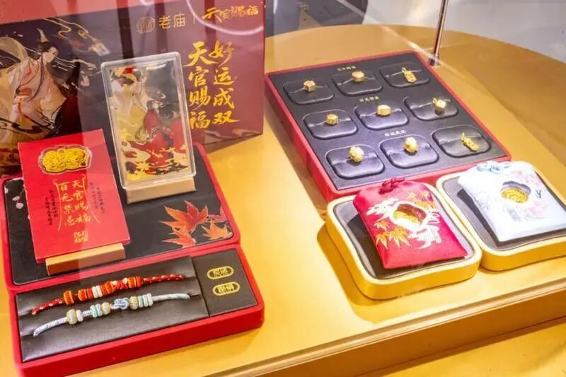 老庙在此次盛会中带来了多款匠心之作,包括《天官赐福》动画联名系列、STAYREAL联名系列、古韵金作系列,以及即将上市的新款老庙古韵金作系列。其中,《天官赐福》动画联名系列巧妙地将老庙“好运文化”与动画中极具辨识度的元素相融合,精心打造出品类丰富创新产品,寓意“天官赐福,好运成双”,为消费者带来独特的文化体验与美好祝福;老庙与STAYREAL联名系列则将STAYREAL旗下IP“MOJO FAMILY”中的角色形象与老庙品牌文化深度融合,兼具时尚表达与好运祝福,满足年轻消费者对于个性与品质的追求。
