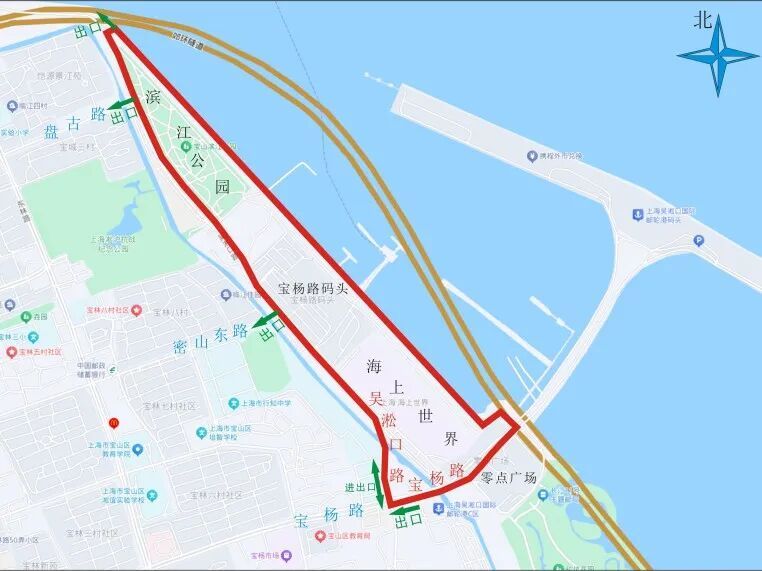 2025年9月30日、10月1日每日18时至22时,对零点大道/宝杨路、宝杨路/吴淞口路、吴淞口路/长江江堤、长江江堤/零点大道,围合区域行人采取限制通行措施。行人可从吴淞口路进入上述区域,滨江步道、盘古路、密山东路、宝杨路只出不进。当人流量趋于饱和时,吴淞口路实行只出不进通行措施。