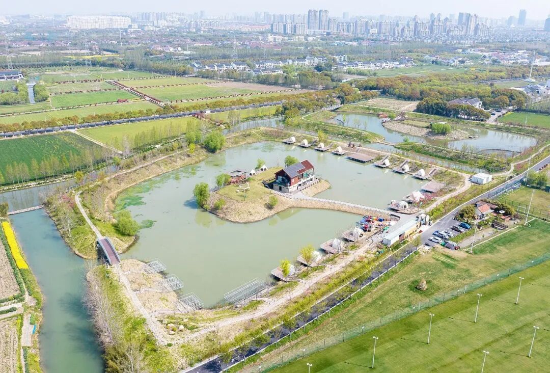 在奉贤新城绿环梦泽冈身核心区域内,坐落着一座美丽的岛屿。名为“桃花岛”的它隐匿在一片河网密布、田畴交错的田野风光之间,每到金秋,位于桃花岛北侧的百亩彩稻田色彩缤纷,金灿灿的稻穗颗粒饱满,摇曳间散发出阵阵稻香;东侧的良渚园开心菜园绿意盎然,各类瓜果滚圆饱满,将丰收的喜悦酿成舌尖的甜。“土地平旷,屋舍俨然,有良田美池桑竹之属”的“桃花源”图景俨然环抱着桃花岛。而步入占地80亩的桃花岛时,桃树繁茂、鸟语花香的“世外桃源”便展现在游人面前。初春时节,“桃之夭夭,灼灼其华”的桃花绽放盛景令人流连忘返,仿佛已深入陶渊明笔下的“芳草鲜美,落英缤纷”的“桃花源”。微风拂过,花香阵阵,让人心生“放空”的松弛感。一条蜿蜒的石子路通向岛中央的小楼,站于小楼之上向远处眺望,四周开阔清澈的湖水尽收眼底,大大小小近20多个亲水露营平台绕湖铺开,游人泛舟游玩,怡然自乐。这片乡村岛屿正在书写着当代“灼灼其华”的“桃花源”新记。