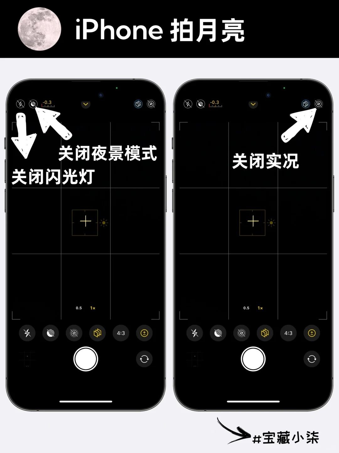 1️⃣关闭闪光灯、夜景模式、实况