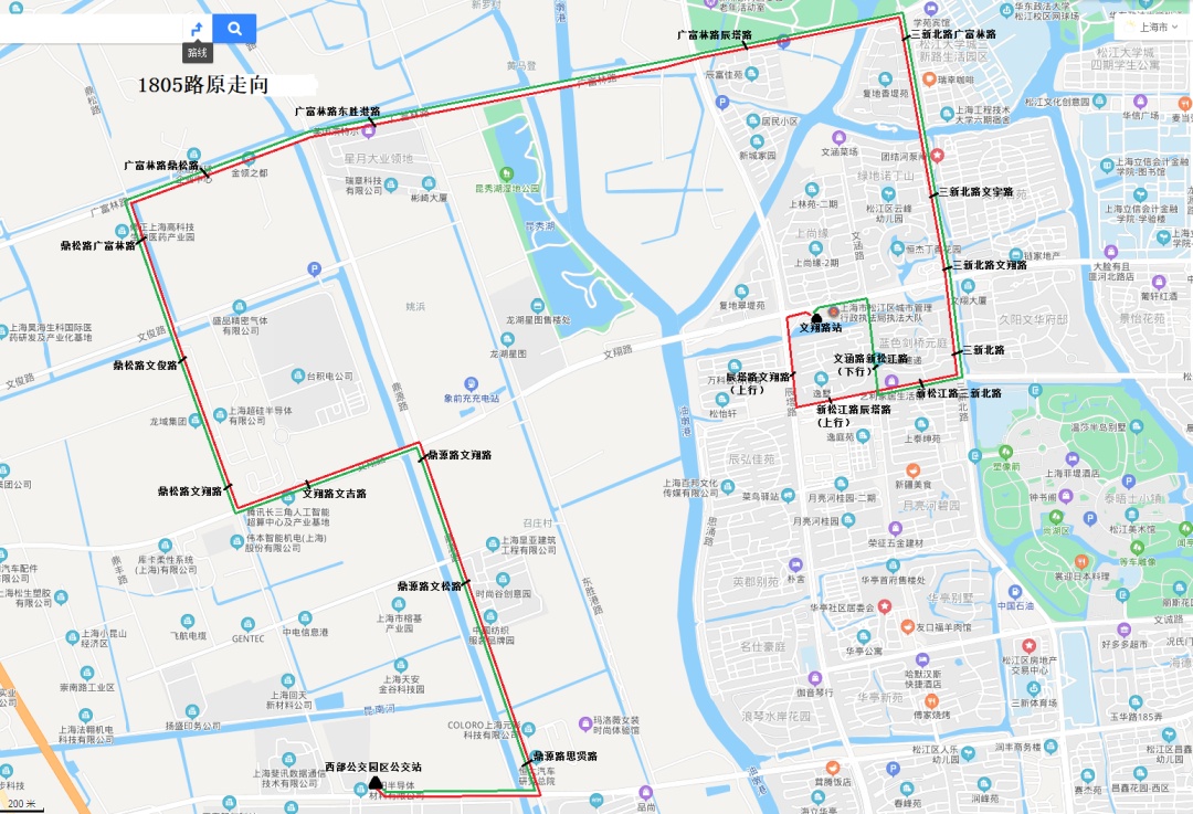 原走向:(上行)自西部工业园区公交站起经思贤路、鼎源路、文翔路、鼎松路、广富林路、三新北路、新松江路、辰塔路文翔路至文翔路站。(下行)自文翔路站起经文翔路、文涵路、新松江路、三新北路、广富林路、鼎松路、文翔路、鼎源路、思贤路至西部工业园区公交站。