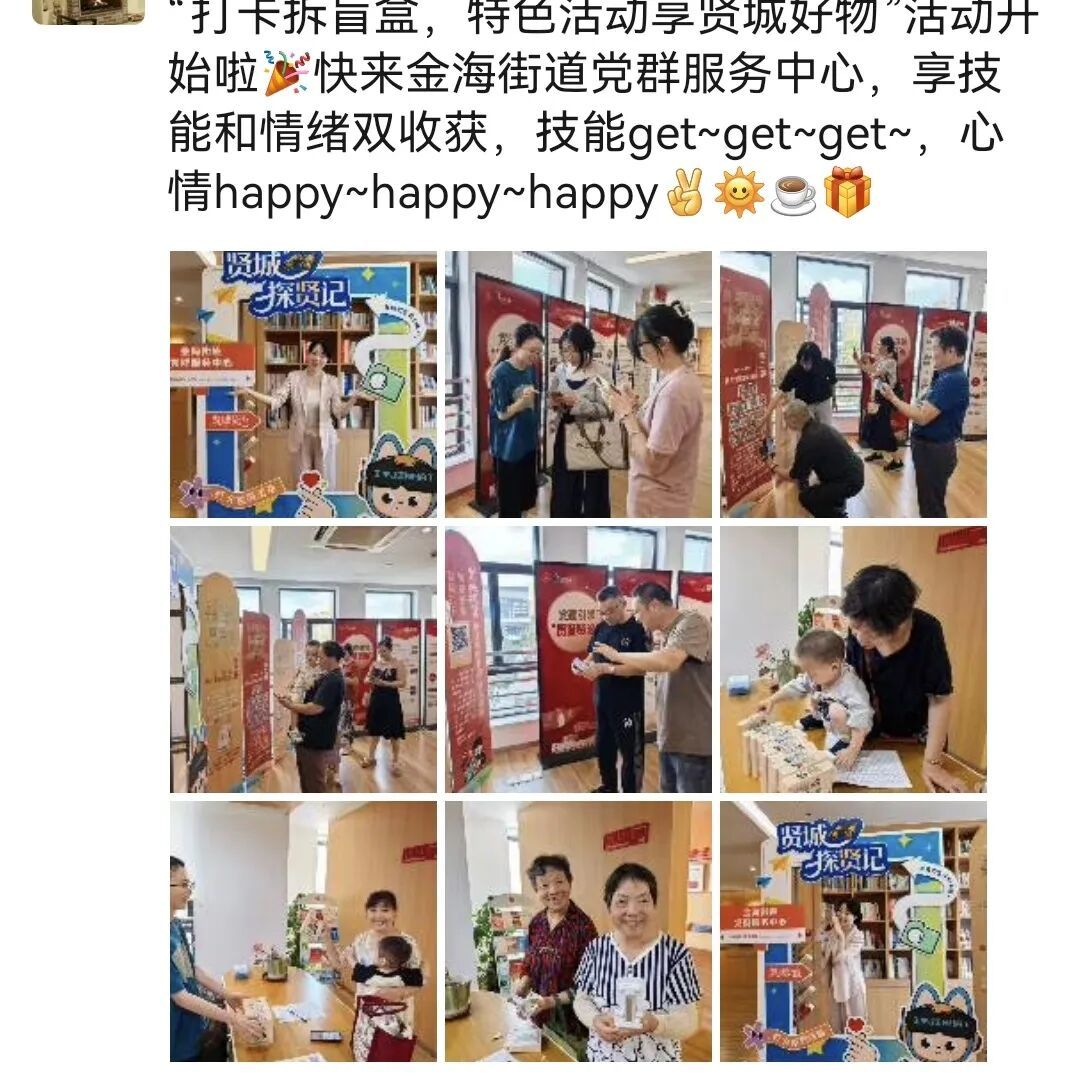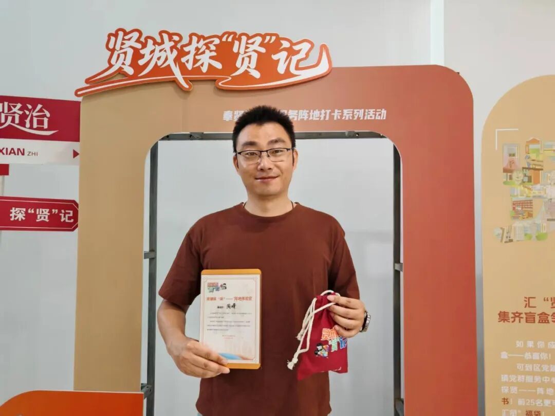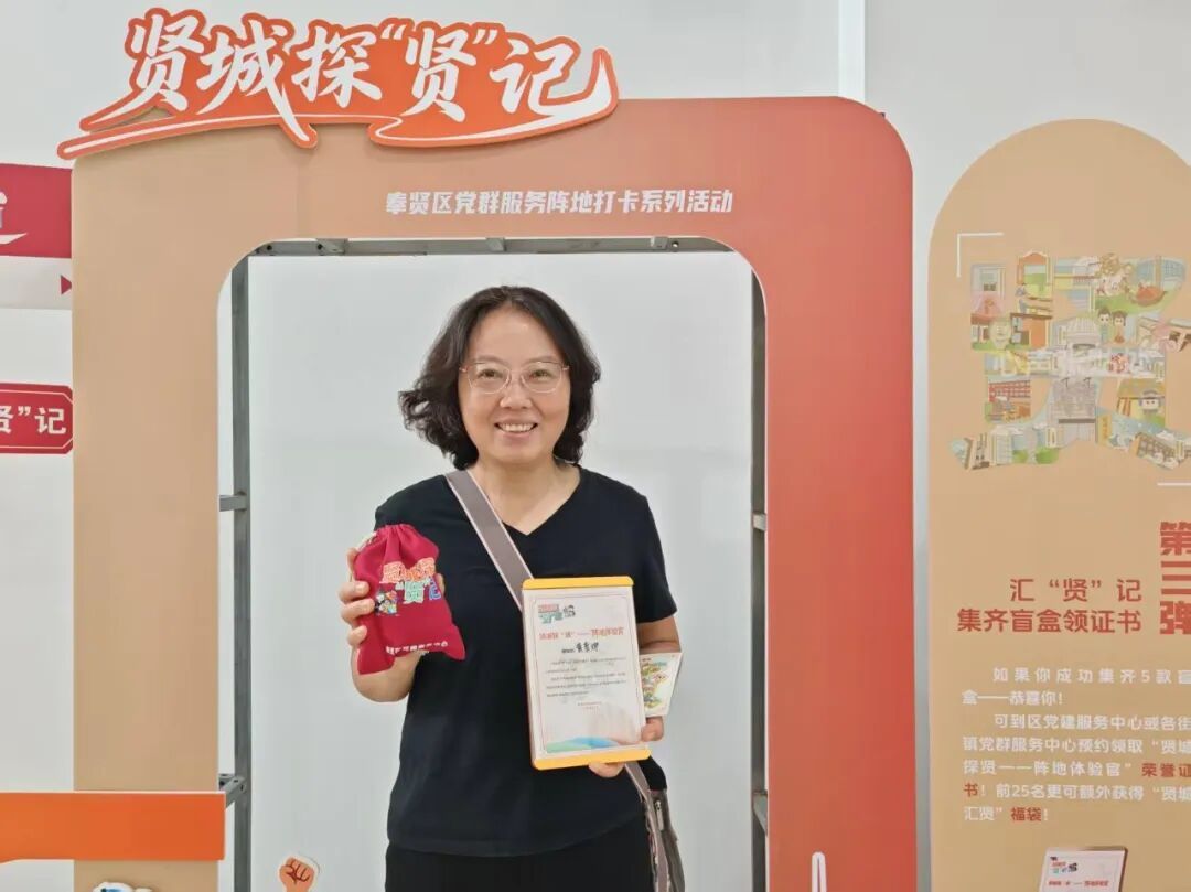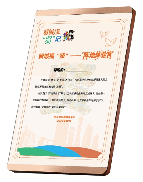 解锁“贤城探贤——阵地体验官”的奉浦商铺业主黄先生说:“参与‘贤城探贤记’,抽盲盒得奉贤特色好物,瞬间被家乡情怀击中。小小物件承载着浓浓的街镇特色气息,仿佛与这片土地重新连接。我被街镇党群阵地的温度与活力深深打动。每一次探索,都是对家乡的再认识,心中满是自豪与温暖。”