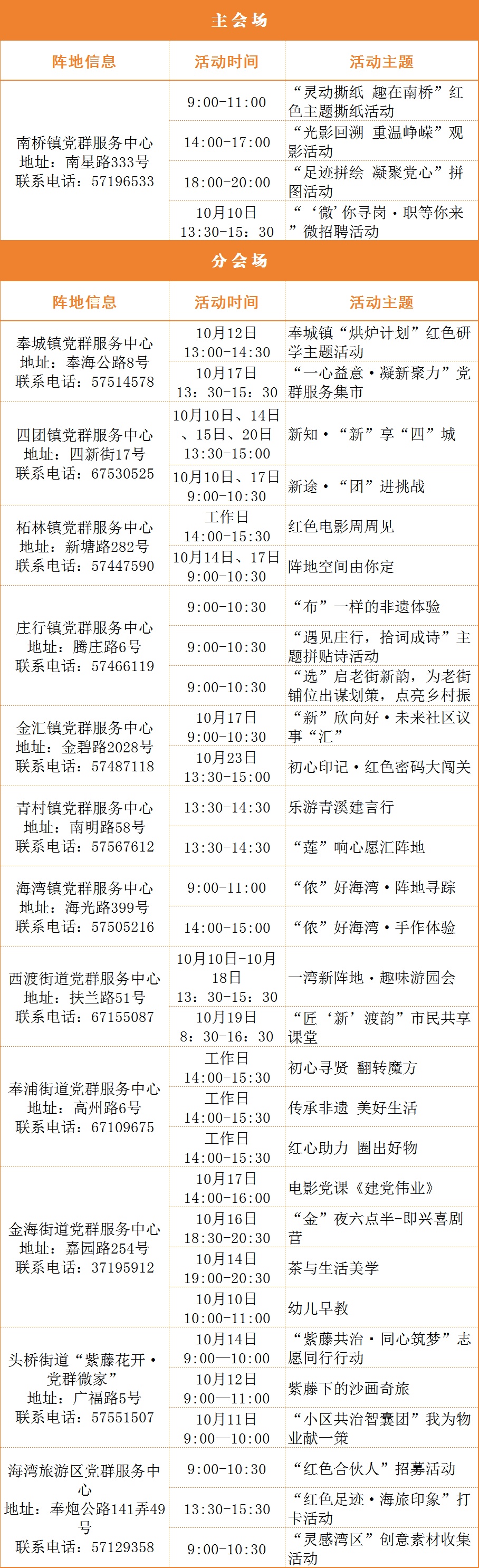 *注:请关注各街镇党群服务中心的微信公众号了解更多活动,也可提前联系咨询。