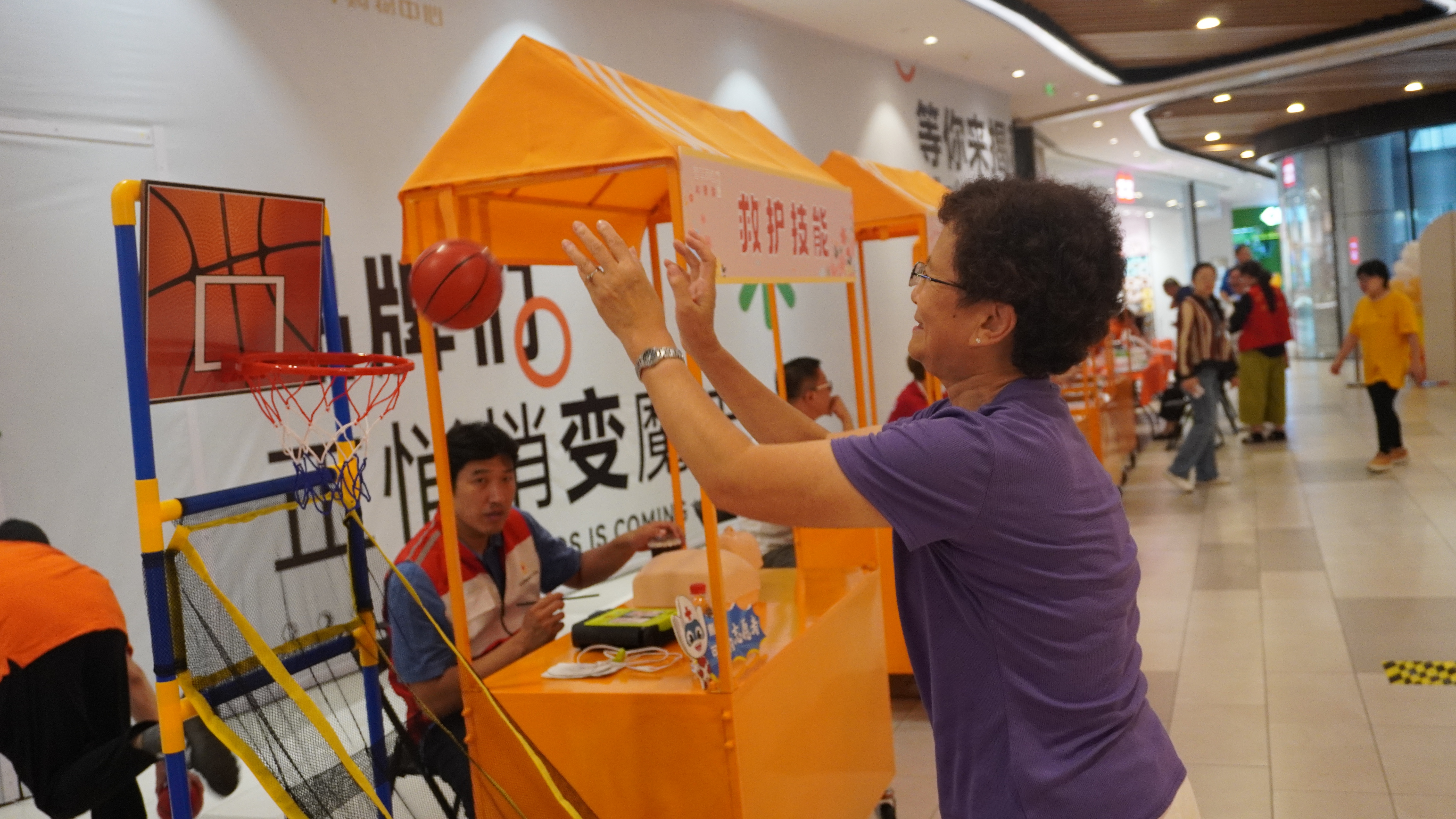 另一侧,由“添睦宝”联盟单位组成的游戏点位热闹非凡,爱心企业们将社会责任融入社区服务,用互动传递温暖。健康守护区更是暖意融融,眼科、口腔及社区卫生服务中心提供爱心义诊;“识盐知味”“乐食惠老”等福利宣传,将健康饮食理念送到老人心坎;清香的茶饮与舒缓的推拿,则为每一位参与者拂去疲惫,注入活力。从政策到健康,从娱乐到关怀,为银发生活保驾护航。