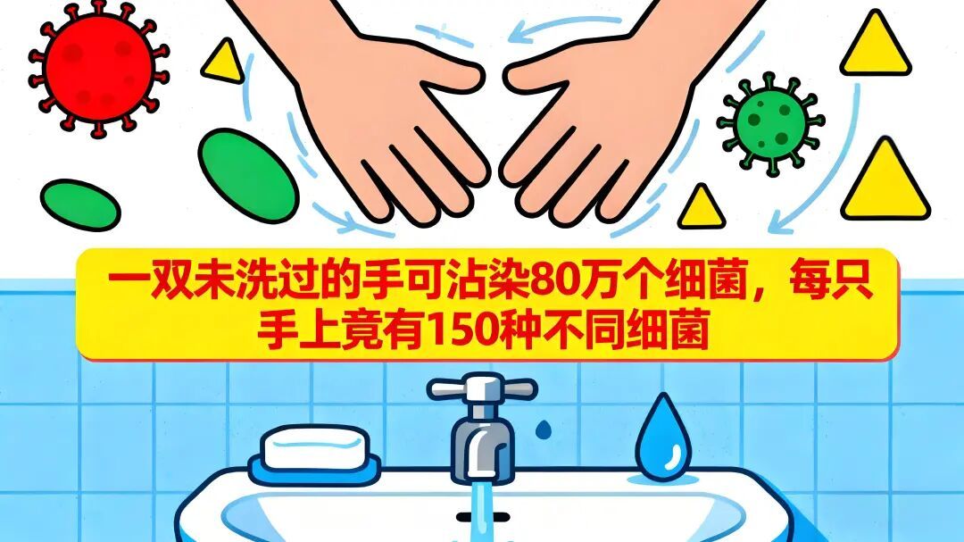 ✦ ✦ • 世界卫生组织在《卫生保健中手部卫生指南》中指出,一双未洗过的手可沾染80万个细菌。美国科罗拉多大学的研究显示:每只手上竟有150种不同细菌,且左右手细菌重合率不到20%,宛如两只手各自掌管着一个“微生物小王国”,虽互不干扰却都暗藏健康风险。 ✦ ✦ ✦ ✦ • 注意!指甲缝或是健康“隐形炸弹”!微生物学专家MarkusEgert教授指出,指甲缝堪称微生物的“热带雨林”,一克指甲垢中细菌数量高达38亿个。其中,既有如凝固酶阴性葡萄球菌这类与人体相安无事的“友好邻居”,也不乏沙门氏菌、痢疾杆菌等危害健康的“杀手”。这些细菌会趁你揉眼睛、拿零食、剥水果时,悄然侵入人体,进而引发疾病。 ✦ ✦ ✦ ✦ • 早在19世纪,洗手的重要性就已被事实证明。然而当时该理论无人信服,直至微生物学发展,人们才明白:洗手是阻断疾病传播最简单、最省钱且最有效的方法。 ✦ ✦