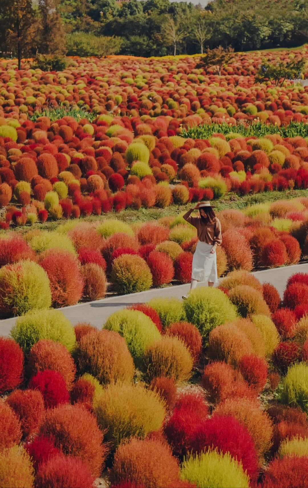 10月的地肤花海,像是打翻了调色盘,从红绿相间逐步向大片红色过渡,漫步其中秋日童话氛围感满满!