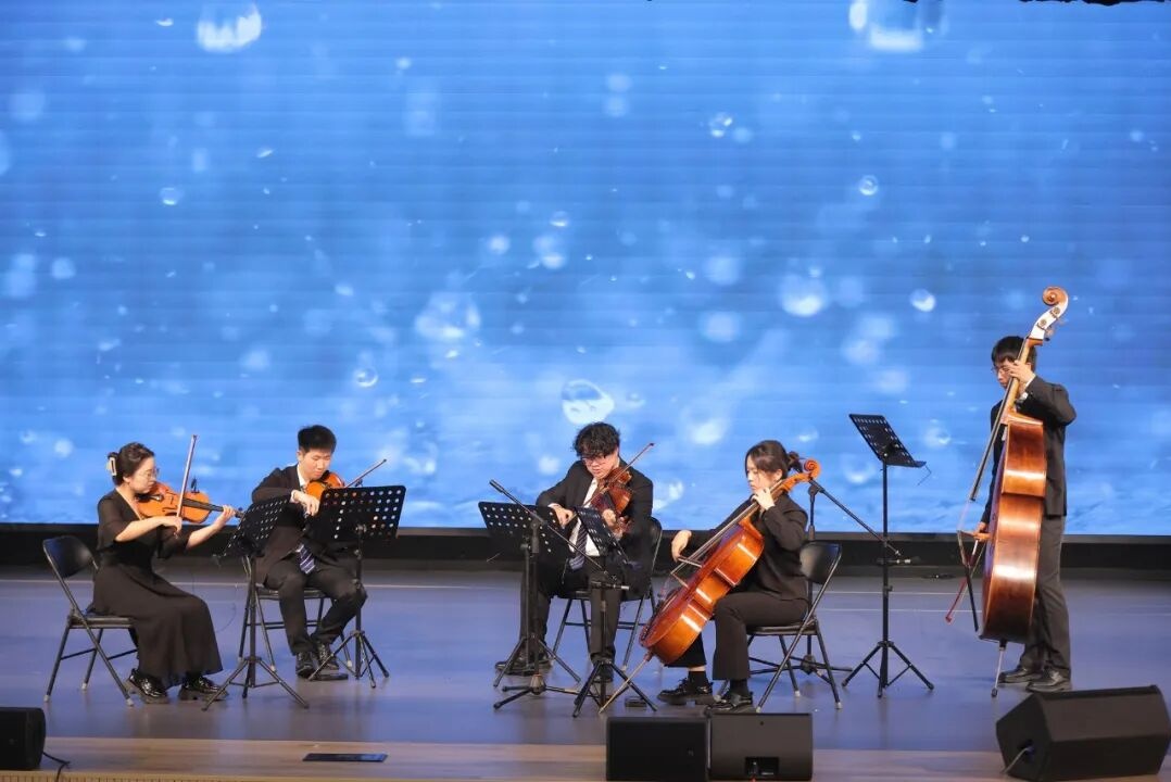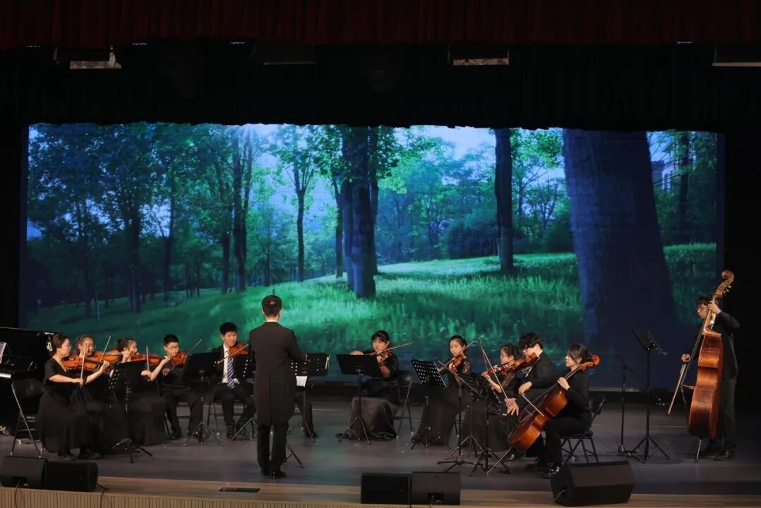 课堂采用"现场演奏+实时导赏"的形式,曲目编排涵盖四大维度:经典浸润板块选取《蓝色多瑙河》《花之圆舞曲》等古典乐作品,以培养学生高雅审美品位;技巧启蒙板块通过《拨弦波尔卡》等弦乐特色曲目,生动展示器乐特点,激发学生学习兴趣;时代共鸣板块演绎《千与千寻》等广受学生欢迎的动漫影视配乐,提升学生参与热情;青春励志板块则以《就是哪吒》《你可以飞翔》等充满朝气活力的国潮改编作品,让学生感受音乐带来的积极力量。