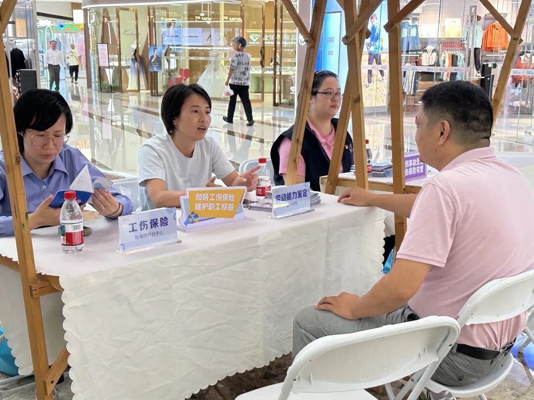 此外,区工伤联席成员单位、区“人社先锋”志愿服务队也在现场设置服务站位,提供政策宣讲、职场反诈宣传及零工市场就业服务。
