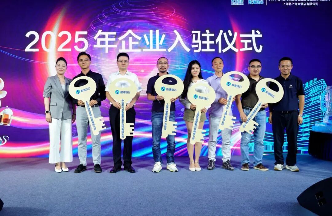 开幕式上,2025年新入驻数通链谷的企业代表获颁象征“信任与承诺”的入驻钥匙。中国电气装备集团数字科技有限公司、上海市健康数据产业协会、上海同路链数字科技有限公司、上海云象链数字科技有限公司、上海徽源智能科技有限公司、传胜纪元科技(上海)有限公司6家单位代表登台,彰显了数通链谷的资源集聚力与区域吸引力,也为后续招商引资打下坚实基础。