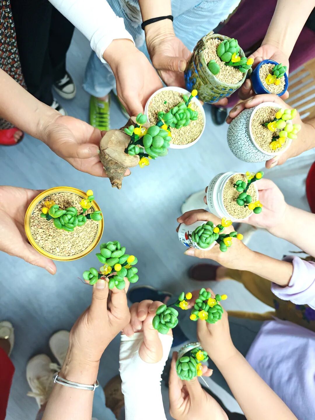 本次“碳”索营精心设计了四大贴近生活的课程,引导居民将环保理念编织进触手可及的艺术品中。在丝网花多肉制作课上,居民们巧手翻飞,将丝袜、铁丝化为永不凋零的“多肉”,实现化“废”为景;绒线编织基础课程则通过一针一线,编织出温暖的围巾与杯套,传递着“零废弃”的生活承诺;微钩技艺教学在方寸之间展现极致艺术,用最细的钩针勾勒出蕾丝般的精致,践行“物尽其用”的哲学;而掐丝珐琅课程则让古老技艺与现代环保碰撞,学员们使用环保材料,完整体验从设计到成品的创作,感悟匠心与可持续的融合。