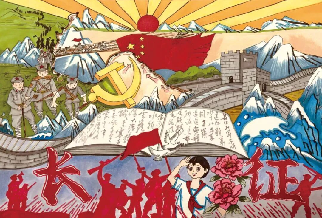 合肥少年王珏尧的绘画《致敬长征精神》,似一曲用色彩与线条谱写的英雄赞歌。画面里,长征战士们在山峦间坚毅跋涉,如铁骨脊梁撑起民族希望,墨迹中蕴藏着长征的峥嵘岁月与精神密码,以丰富且富有张力的画面语言,将长征精神的伟大与不朽,演绎得淋漓尽致。