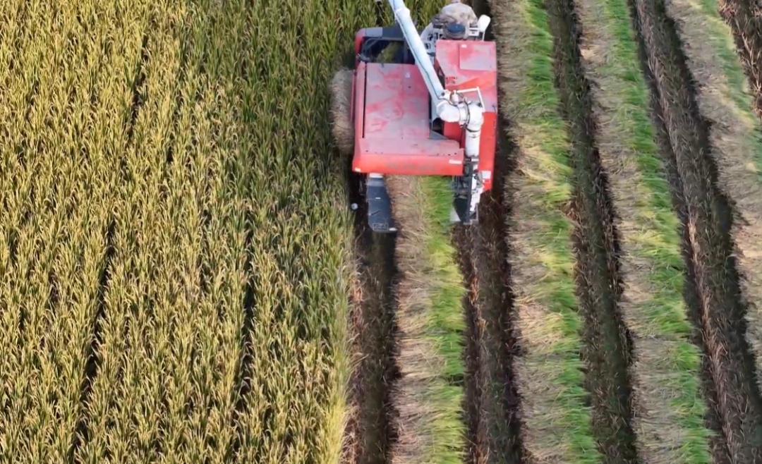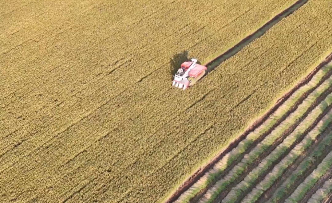 在奉贤区青村镇李窑村,连片的“美谷2号”在微风轻拂下掀起层层稻浪,饱满的稻穗在阳光下泛着金光。伴随着机器的轰鸣声,两台收割机在稻田里来回穿梭,割稻、脱粒、转运等工序一气呵成,空气中弥漫着清新的稻香。“今天收割以后,后续就会进行除杂、烘干、碾米、包装等一系列工序。”区农业技术推广中心粮油科助理农艺师金雯伊介绍,依托现代化加工设备,经过低温烘干、精细碾磨,预计在10月20日左右,新米就将抢“鲜”上市。