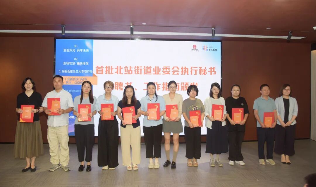 针对社区治理的关键环节——业委会,北站街道亮出党建引领物业治理的“百日攻坚”成果,并同步启动党建引领推动业主委员会建设三大专项行动,即业委会组建换届、落实履职规范运作和创新开展治理赋能行动,展现出规范与激励并重的工作路径。活动现场,首批业委会执行秘书获颁聘书,一批标准化建设四、五星级业委会受到表彰,旨在激发业委会履职活力。
