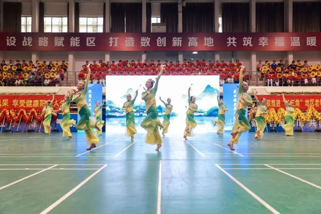 10月15日,非遗元素广场舞比赛更是亮点满满,赛事充分吸收各地“体育+文化”融合经验,鼓励各参赛队伍将地方非遗元素巧妙融入广场舞编排,展现非遗艺术与体育活力的完美结合。各城市代表队依次登台,呈现了一场场独具地方特色的展演,让传统韵味与银龄风采在舞步中交相辉映。
